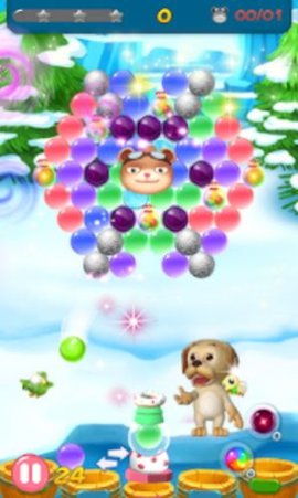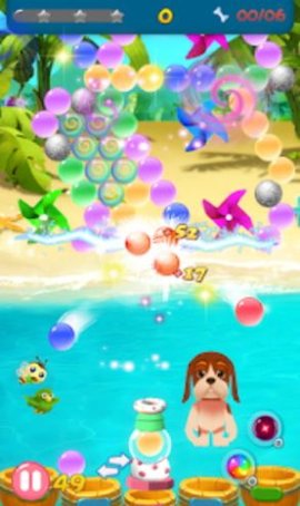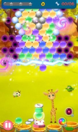 2、学会使用下面的泡泡机,瞄准发射和消除可爱的动物泡泡。