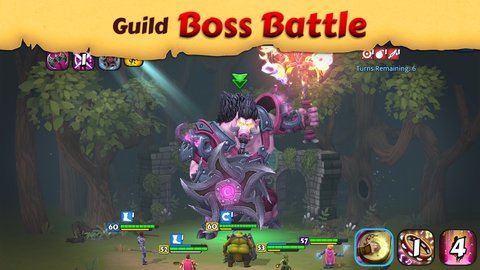 3、与你的朋友一起参加一场公会boss之战,或者通过棋盘级别的战役!收集和升级所有类型的幻想英雄:圣骑士,巫师,吹口哨的马。