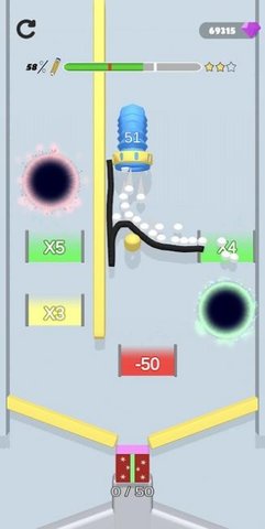 3、不同的关卡会有不同的挑战,让所有的球都掉进管子里。