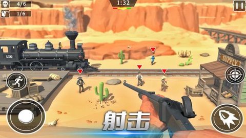 2、操作简单,只需滑动屏幕来控制准星瞄准目标,手枪自动射击以击败敌人。