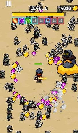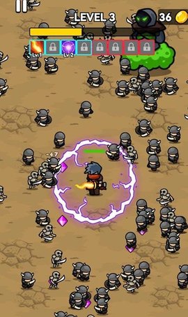 4、你将扮演一个英雄,在地图上战斗,消灭怪物,突破包围,提高你的能力,学习各种强大的技能,努力生存并解锁各种有趣的战斗成就。