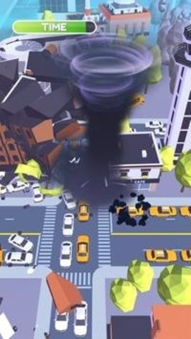 3、控制龙卷风加入游戏挑战,摧毁游戏场景中的一切,将城市变成废墟。