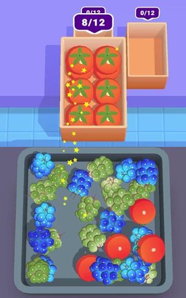 3、然后点击采摘的蔬菜或水果,将其装入盒子。如果装载错误,您可以单击盒子中错误的水果将其取出并重新装载。