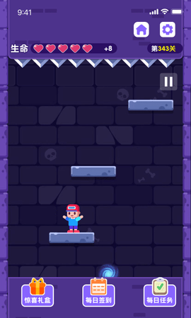 1、共100层,玩家必须不断跳跃,才能赢得游戏。