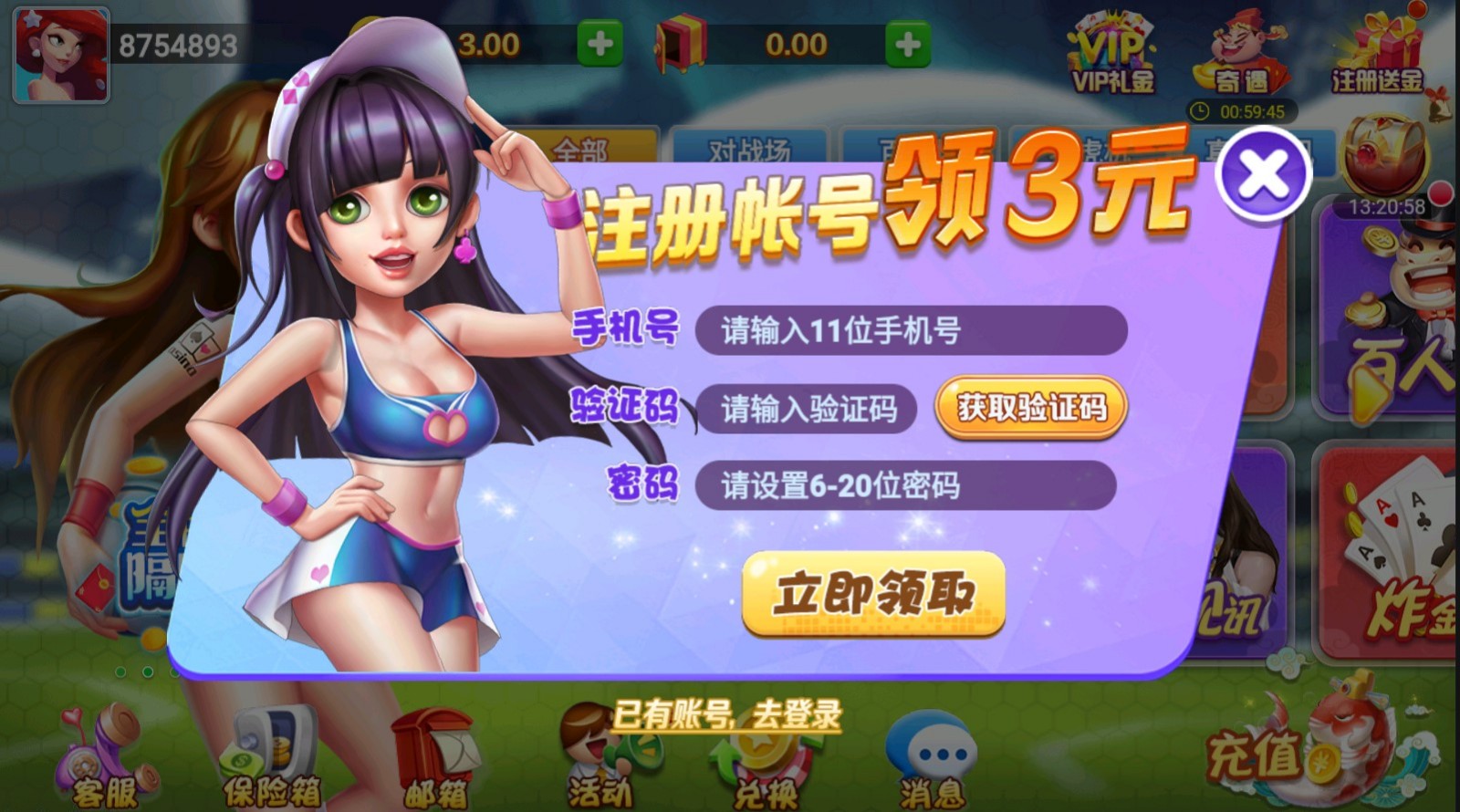 3、最快速度开局对战,多多押注,与美女在线畅玩棋牌游戏。