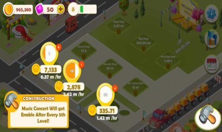 2、利用完成任务的奖励去完善你的展位并添加更多桌子去增加你的收益。