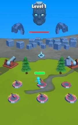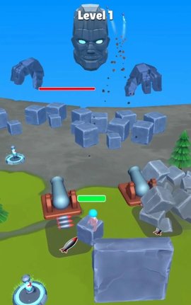 2、我们需要使用大炮进行反击,收集更多的炮弹并将其放入堡垒,疯狂射击并摧毁石雕。