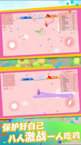 2、注意及时避开现场障碍物,不要让贪心蛇的头碰到对手。