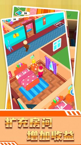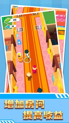 4、玩家可以成为酒店业主,购买道具装饰房间,招募员工分享工作,推广酒店,吸引大量客户来赚取丰厚利润。