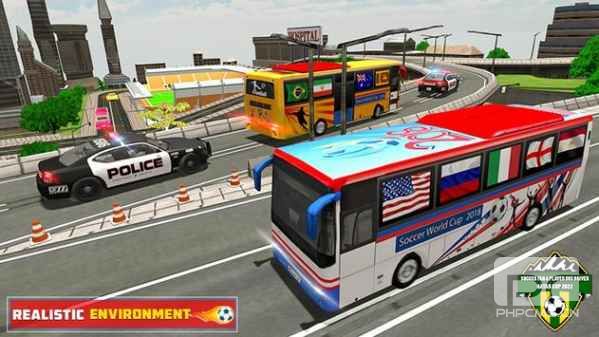 3、在运输巴士上为他们的足球运动员提供运输服务,并赚钱解锁超高速巴士和豪华旅行客车,2019年长途汽车驾驶模拟器的足球巴士驾驶游戏,在长途公路上比赛,享受交通巴士驾驶任务,快点,因为你的足球队员正在焦急地等待。迅速开车到下车点,把他们送到目的地,那一定是一个足球场,小心驾驶,因为每次你在高速行驶的汽车中发生事故或撞上引擎,你的公共汽车就会被损坏,水平下降,确保你安全地放下足球运动员,确保公共汽车不会损坏或损坏。