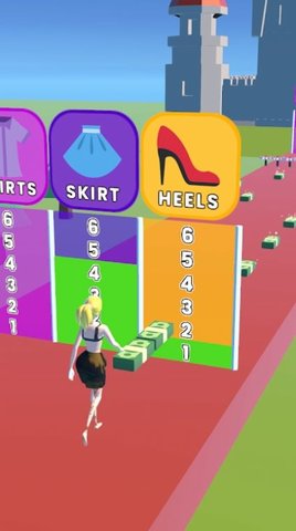 2、左右滑动屏幕,躲避障碍,收集更多的金钱,然后进行衣服收集