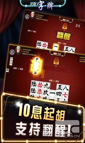 字牌又名:八一、字牌、打字牌、跑胡子、桥字牌,亦称“扯二七十”、“棍棍”、“大贰”。玩法与麻将类似,比麻将便捷有趣,但是玩法多变,其复杂性远远甚于麻将。在湖南叫:红拐弯、扯胡子、碰胡子、偎胡子、歪胡子、六胡抢,正版字牌采用广西桂林的大字牌规则,10胡起胡,可捉炮,胡牌翻醒,超容易的胡牌,令人心跳的翻醒简单又刺激!游戏可玩性远超:黄金岛,波克,赖子山庄,白金岛,JJ,博雅,同城游,老K