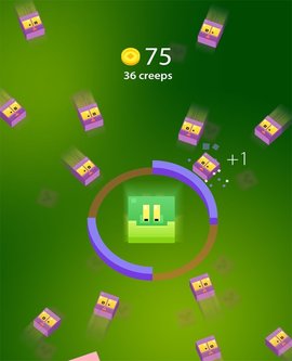 1、中心是非进攻性的,球员需要旋转两边的墙来阻挡来自周围方块的攻击。方块击中墙壁,玩家得分。