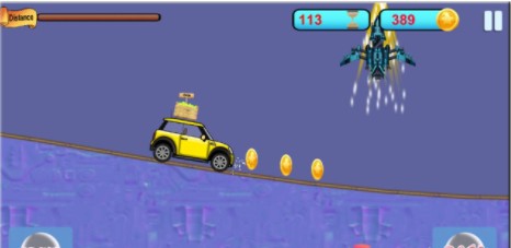 1、驾驶游戏玩法挑战,控制汽车在崎岖的山路上加速、减速和倒车。