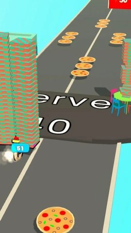 1、左右滑动屏幕,控制快件车前进,收集更多披萨,避开不利通道;