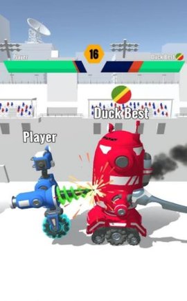 3、游戏中的战斗是一对一的战斗体验,每个人操作自己的机器人进行攻击和战斗,降低对手的血量看谁能赢。