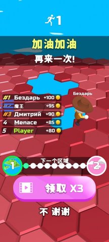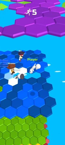 4、最后一名选手和多名选手同台比赛,比赛在高台进行,平台是六角形的积木组合,每次有人踩到它,就会被砸坏,我们要尽可能坚持到最后,这样我们才能赢得第一名。