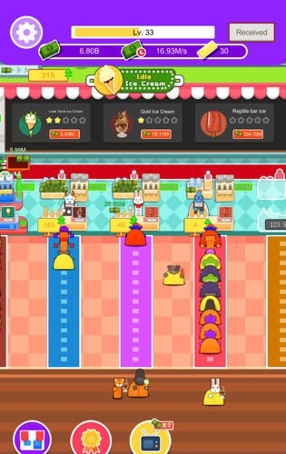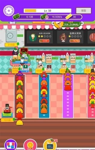 1、IdleIceCream(放置冰淇淋)是一款商业模拟游戏。