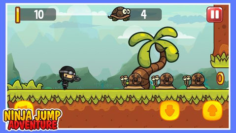 4、忍者跳跃冒险游戏中,玩家控制角色进行冒险。一路上有许多障碍和敌人,玩家需要早早观察,提前做出应对。