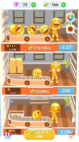 3、做表情,赚收入,升级生产线,终于有了一个很酷的表情工厂。
