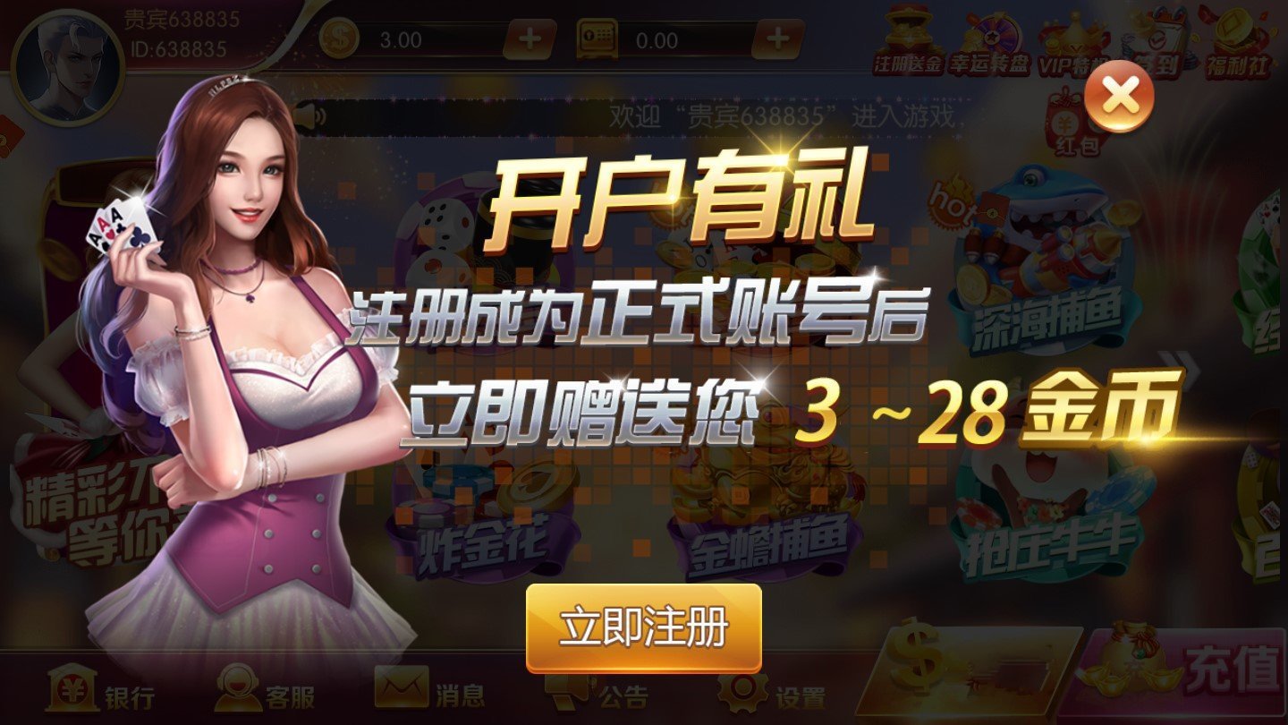 3.新玩家免费进行棋牌的注册,福利多多,还有更多精彩的棋牌内容等着大家