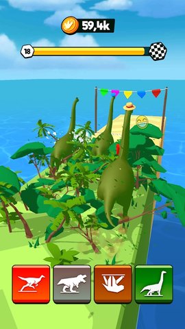 1、许多不同类型的恐龙可以随意使用它们的能力,有趣的跑酷体验会给玩家带来全新的战斗乐趣。