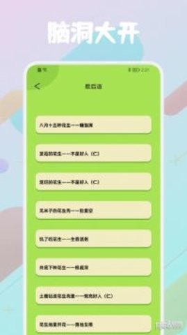 1、玩疯狂猜谜游戏,增加你的知识,开发你的大脑潜能,帮助你打开你的大脑洞。