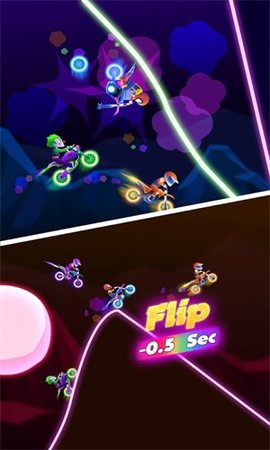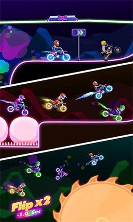 3、摩托车霓虹灯比赛非常精彩。在游戏中,玩家可以与其他玩家在线竞争。每一条赛道都是不同的,他们需要在第一时间避开其他车辆和各种障碍物。