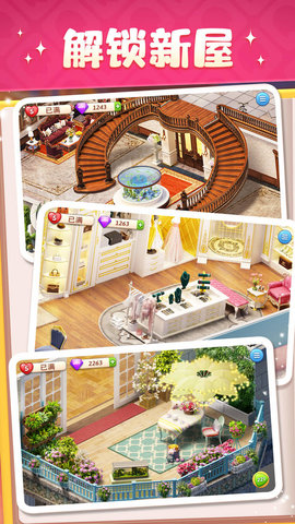2、在游戏过程中做最好的设计师,通过家居装饰帮助幸运家庭实现您的设计理念。