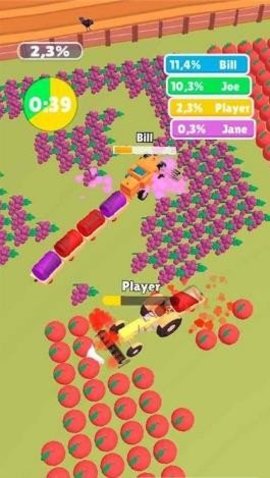 1、通过刷屏控制拖拉机的运动,收获和粉碎更多的植物,不断提高您的性能。