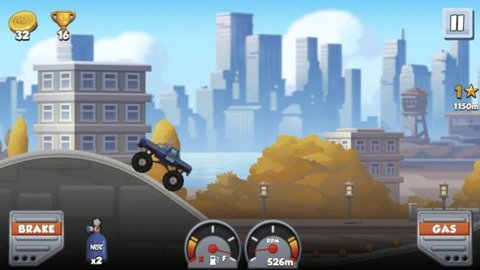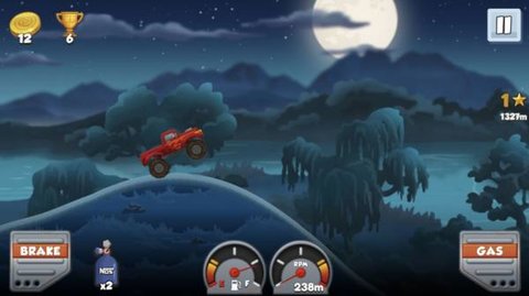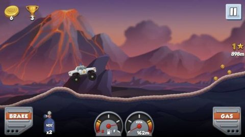1、爬王会有各种不同的场景地图,会有不同的山丘,开车稳步前进。