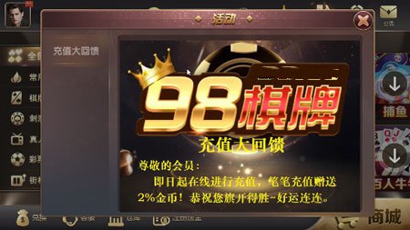 1、98棋牌安卓版游戏中有着超级多的游戏种类,每个游戏种类又有着超级多的额游戏玩法;