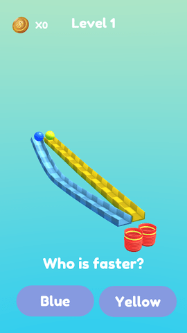 1、这是一款猜哪个轨道球跑得快的休闲游戏,游戏中没有操作,只需要玩家观察后选择滚得快的球,