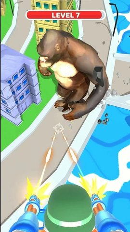4、一只巨大的大猩猩正在摧毁这座城市,你的梦想是成为一个英雄,现在机会就在你面前,你必须抓住它,拿起你的武器,向巨型大猩猩走去,用你的武器摧毁它。