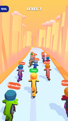 2、你可以与其他玩家在不同的地图上比赛你的滑板车。