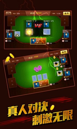 2、场景完美模拟线下棋牌室,让你在游戏中有着置身其中的体验。