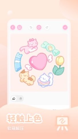 Lovely Color(少女与猫)是一个非常有趣和可爱的休闲趣味益智游戏,游戏风格可爱柔和,你可以在这里玩上色游戏,用丰富的色彩填充空白的线条艺术,使其看起来有趣而清新。