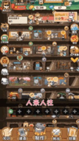 2、比如客人消费后显示的金币只需要点击后可以即可收到,或者如果金币足够前台会出现一个向上的箭头点击后可以升级,或者点击不同的建筑设施进行轮换升级等非常简单。