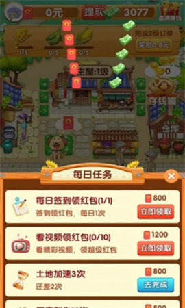 1、整个游戏自由度非常的高,玩家可以自由操作和发展,在操作过程中完成任务会产生各种红包奖励。