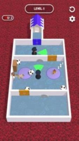1、玩家控制狗在房间内自由行走,快速搜索被困动物的位置,避免警卫的搜索。