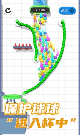 3、保护所有小球顺利落入杯中,避开此处所有障碍物。