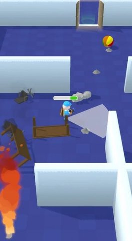 1、玩家应使用吸尘器将房间内的各种家具装饰物吸走作为子弹,然后避开敌人的视线。