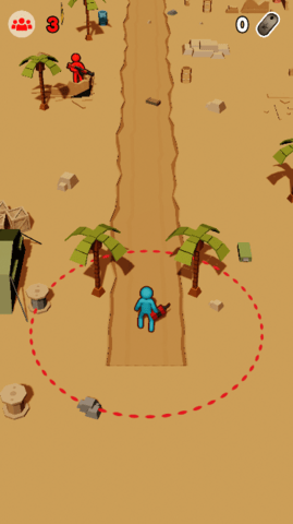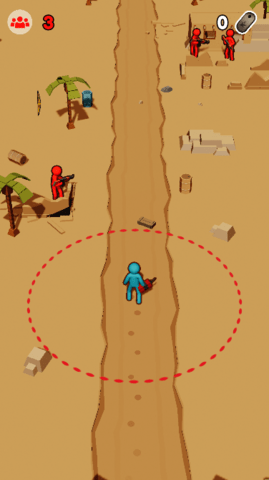 3、注意,在红色圆圈内是你的投掷范围,避开敌人的子弹,接近敌人。
