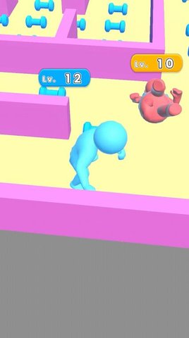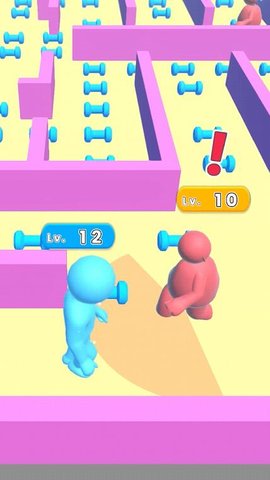 2、敌人在攻击你,快跑。在迷宫中捡起哑铃来强化自己,强化自己,打败敌人。