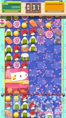 3、取出相同颜色的食物,将传送带送来的食物清理干净。