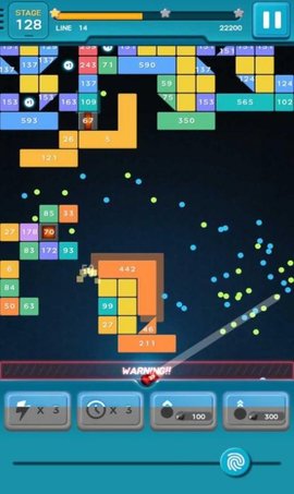 3、球落下后,游戏结束。击中一些砖块会给你带来额外的生命值或导弹。