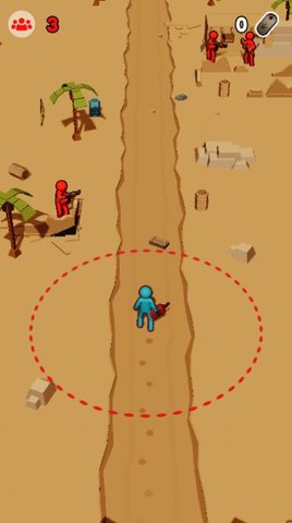 1、控制炸药包狂人的移动。注意红圈是你的投掷范围,避开敌人的子弹,靠近敌人。