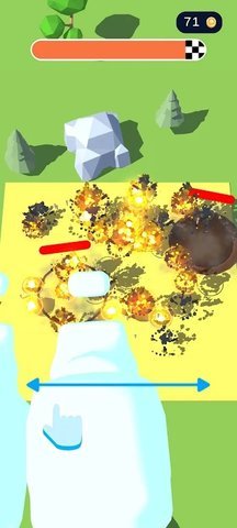 3、垂直打击飞过目标后,左右滑动屏幕调整火箭密度。