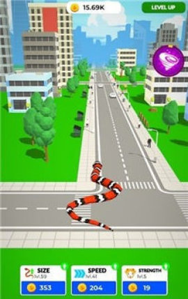 2、你可以控制一条更悠闲的蛇在城市中自由漫步,欣赏城市风景。