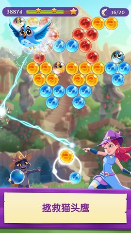 1、在这个神奇的射击冒险中,弹出3个泡泡使其爆炸;